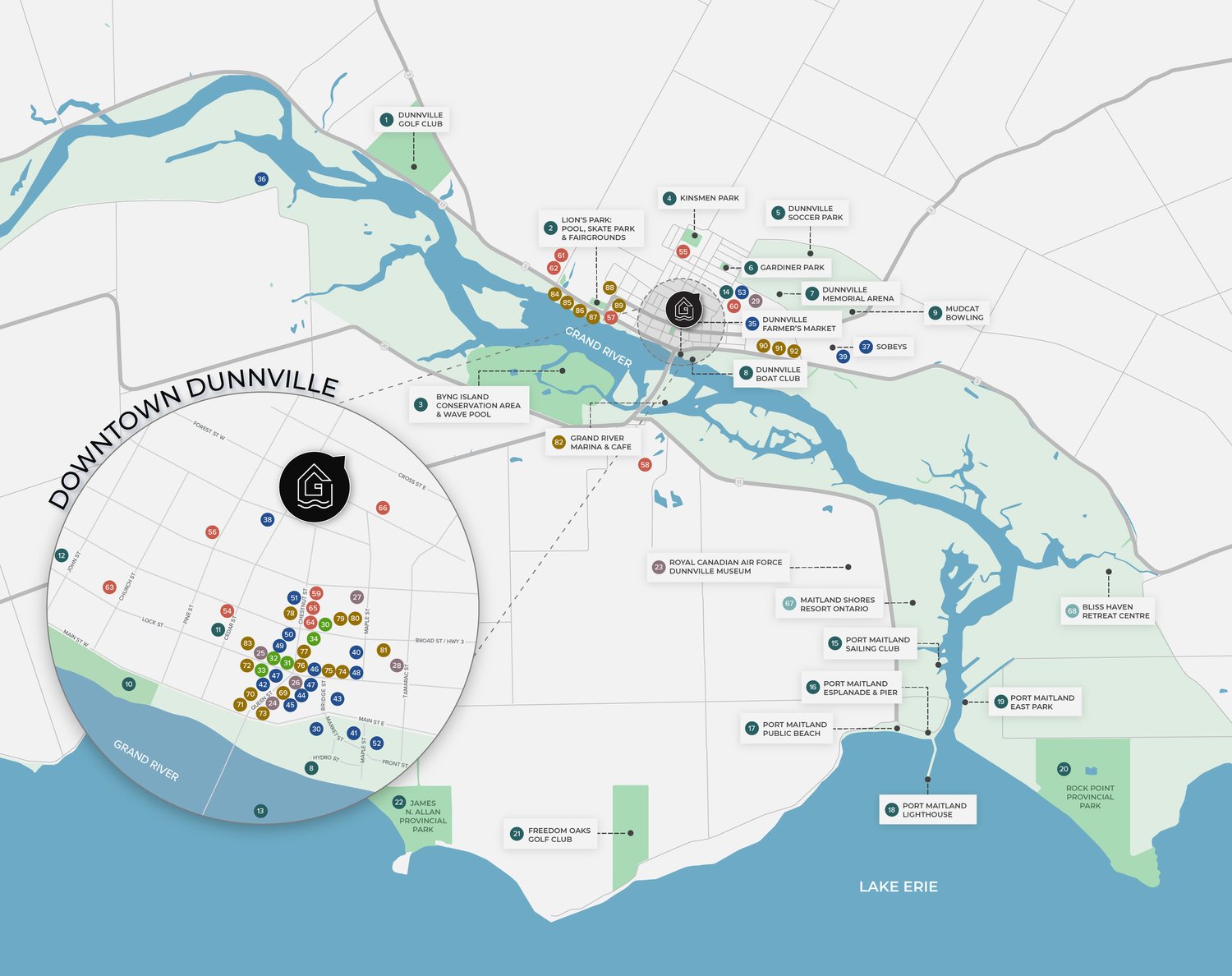 Grand River Towns is a new townhouse development by Richardson Group Developments currently in preconstruction at 114 East Cross Street, Dunnville. The development is scheduled for completion in 2025. Available units range in price from the high $300,000’s to the low $600,000’s. Grand River Towns has a total of 39 units. Sizes range from 700 to 1275 square feet. The Grand River Towns are nestled within charming Downtown Dunnville ­— a truly unique place where everything you could need is right at your doorstep. Opportunities for adventure are limitless.
